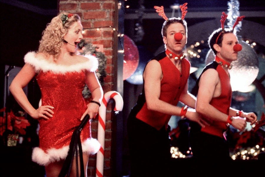 Elaine sings "Run, Rudolph, Run", with no microphone visible initially. After a brief scene between Ally and Billy, the camera cuts back to her, wearing a headset microphone.